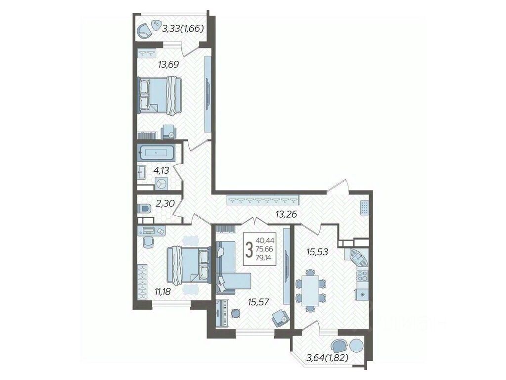 Продаётся 3-комнатная квартира в строящемся доме (Дом Литер 1), срок сдачи: 1 кв. 2025, общей площадью 79.14 кв.м., на 9 этаже. Без отделки, но с возможностью заказать отделку