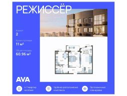 Продаются 2-комнатные апартаменты в ЖК "Режиссёр" в доме (Литер 4), срок сдачи: 2 кв. 2026, общей площадью 60.96 кв.м., на 7 этаже. Без отделки, но с возможностью заказать ремонт.