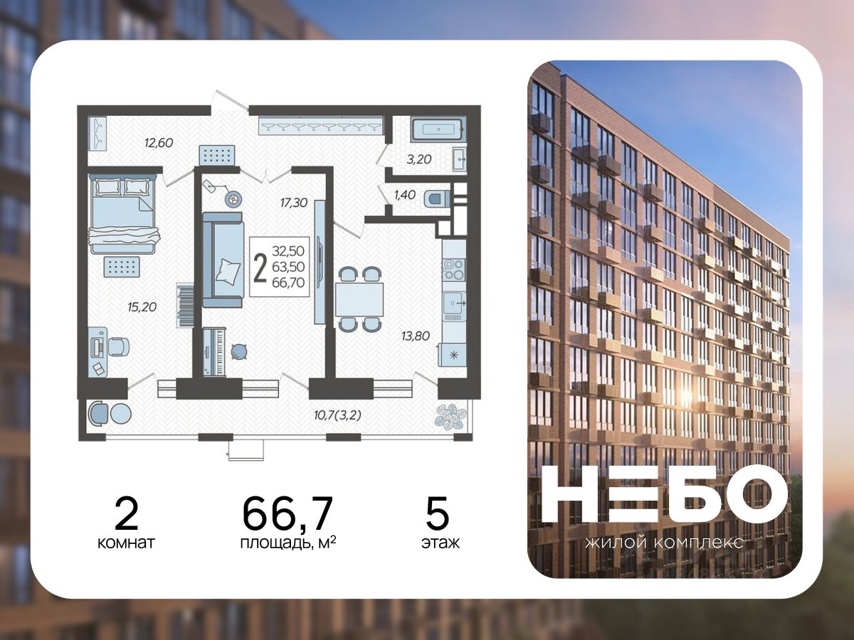 Жилой комплекс "Небо" - это 8 уютных 12-этажных домов с монолитным фундаментом. Фасад выдержан в бежевых и светло-коричневых тонах, легкости архитектуре придают лоджии с панорамным остеклением и "французские" окна. Достаточно большое расстояние между домами обеспечивает удобство перемещения во дворе и красивые виды из окон каждой квартиры. "Небо" - идеальный баланс комфорта и функциональности.