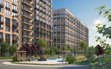 Яркие небесные акценты в оформлении входных групп подчеркивают общую стилистику жилого комплекса. В каждом подъезде предусмотрены колясочные, дизайнерские лифты и круглосуточное видеонаблюдение.