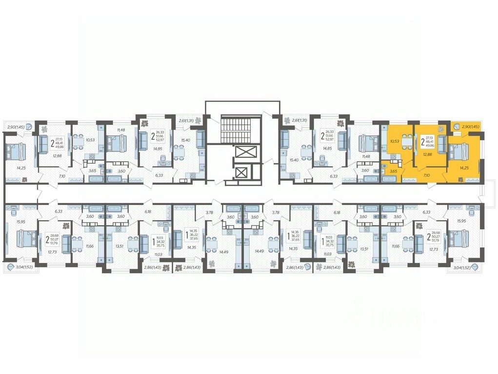 Продаётся 2-комнатная квартира 172 в ЖК "Смородина" (Корпус 14, Секция 1), на 18 этаже 19-этажного дома, срок сдачи: 4 кв. 2025, общей площадью 49,86 кв. м. Без отделки.