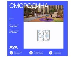 Продаётся 1-комнатная квартира 236 в ЖК "Смородина" (Корпус 18, Секция 2), на 12 этаже 12-этажного дома, срок сдачи: 2 кв. 2028, общей площадью 37,65 кв. м. Без отделки.