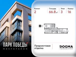 Срок сдачи: 2 кв. 2026, общей площадью 66.8 кв.м., на 3 этаже.