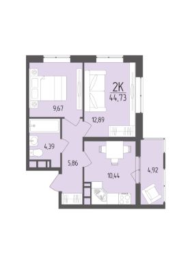 Продается 2-комн. квартира, 44,73 м²