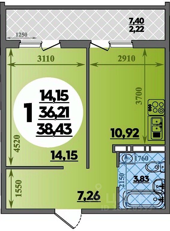 Продаётся 1-комнатная квартира в строящемся доме (Литер 37), срок сдачи: I-кв. 2026, общей площадью 38.43 кв.м., на 9 этаже. Квартал 6 — это новый современный квартал в жилом районе Восточный с полной инфраструктурой и обновленным проектом благоустройства территории: