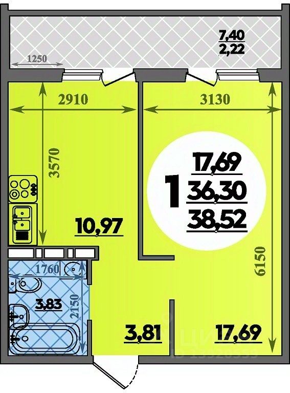 Продаётся 1-комнатная квартира в строящемся доме (Литер 37), срок сдачи: I-кв. 2026, общей площадью 38.52 кв.м., на 15 этаже. Квартал 6 — это новый современный квартал в жилом районе Восточный с полной инфраструктурой и обновленным проектом благоустройства территории: