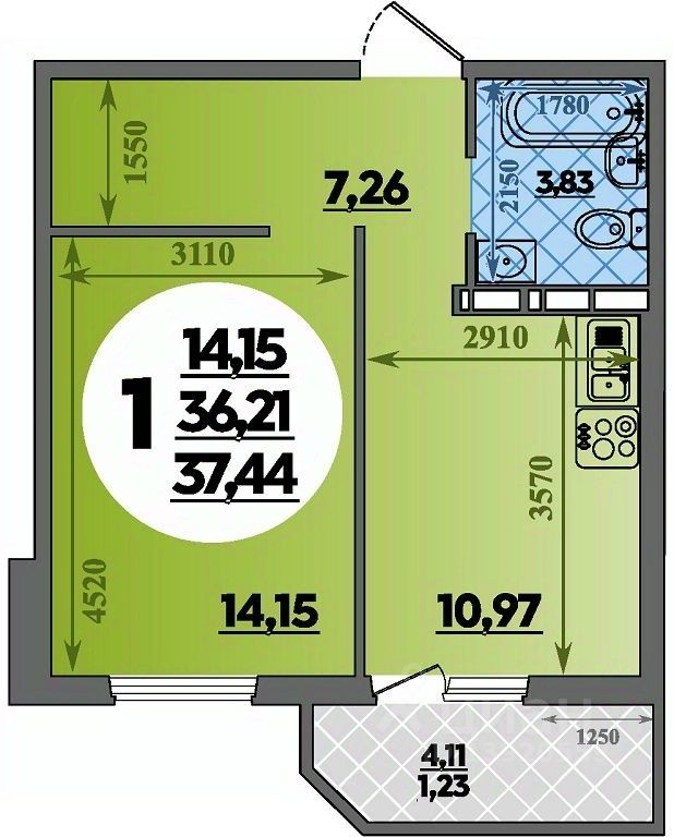 Продаётся 1-комнатная квартира в строящемся доме (Литер 37), срок сдачи: I-кв. 2026, общей площадью 37.44 кв.м., на 2 этаже. Квартал 6 — это новый современный квартал в жилом районе Восточный с полной инфраструктурой и обновленным проектом благоустройства территории:
