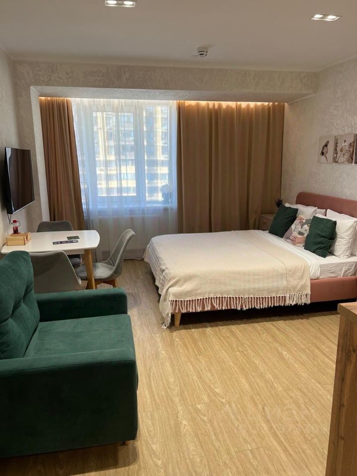 Продается стильная студия в ЖК GRAND PALACE , апартаменты с современным евро ремонтом в монолитном доме 2023 года постройки. Просторная комната оборудована удобной кроватью и мягким диваном, а также рабочим столом с креслом. Из окон открывается вид на улицу. Апартаменты укомплектованы всем необходимым; двуспальная кровать и кресло, кровать для ребенка, вся бытовая техника (чайник, кофе машина, холодильник, стиральная машина, фен, утюг, гладильная доска и т.д. Централизованное кондиционирование, кухонный гарнитур, шкафы для одежды, белье, полотенца, телевизор, интернет, WI-FI и вся посуда. На первых этажах СПА зона, фитнес зал, кафе, ресторан, магазины и зона для работы и отдыха. Рядом ТРЦ SBS MegamoL , ТРЦ Мередиан, Ашан, Окей, много кафе и ресторанов в пешей доступности. Парковка напротив у торгового центра всегда есть места, а также подземная и наземная в этом ЖК. Рядом остановка трамвая, парк Галицкого 10 минут на машине так же удобный выезд на М 4 , в аэропорт, ЖД вокзал. Видео наблюдение во всем здании и на улице, детская площадка.