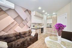 Продам однокомнатную квартиру с новым ремонтом, мебелью и техникой. Интересная планировка c большой кухней-гостиной и ленточным балконом. Балкон застеклён, утеплён и обустроен для жизни. В квартире выполнен дизайнерский ремонт, установлена новая мебель и бытовая техника. Квартира новая, никто не жил.