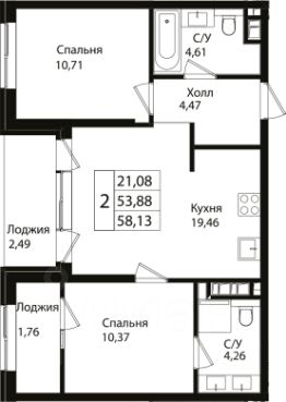 1 лоджия, 1 балкон