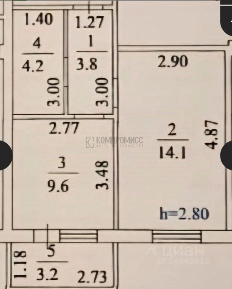 Продается 60% квартиры, 31,7/14,1/9,6 м²