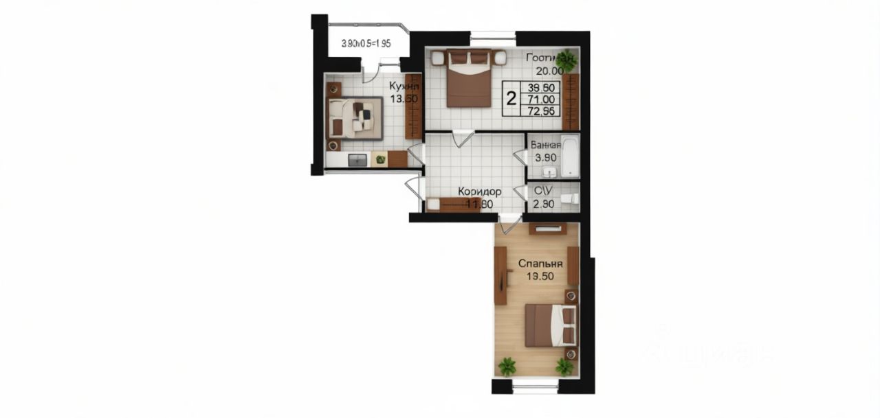 Общая площадь72,95 м²