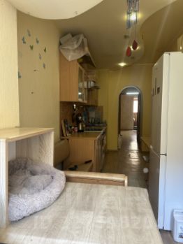 Однокомнатная квартира в тихом спальном районе посёлка Тюменского. Два выхода на разные улицы, окна выходят на две стороны. Большая комната с балконом, установлены деревянные окна. Из окон открывается прекрасный вид на горы.