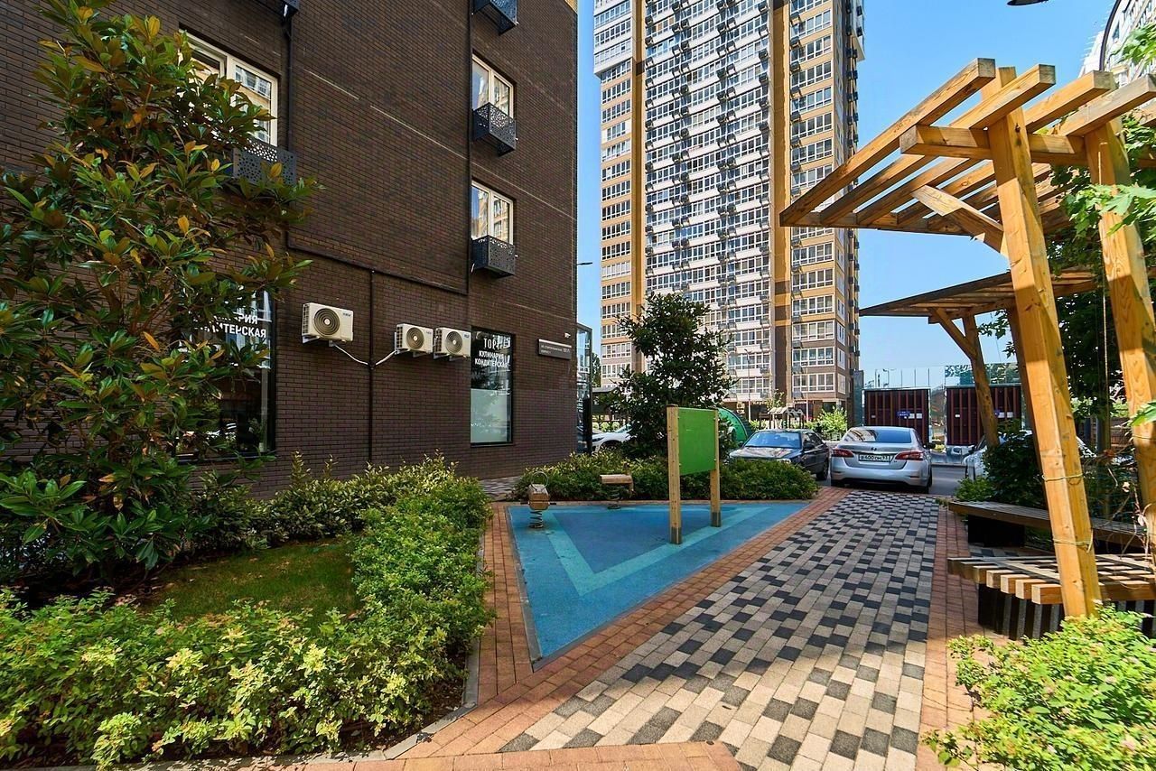 Закрытая территория, видеонаблюдение, видеодомофон, консьерж-сервис, много зелени.