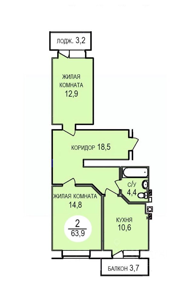 63,9 м²