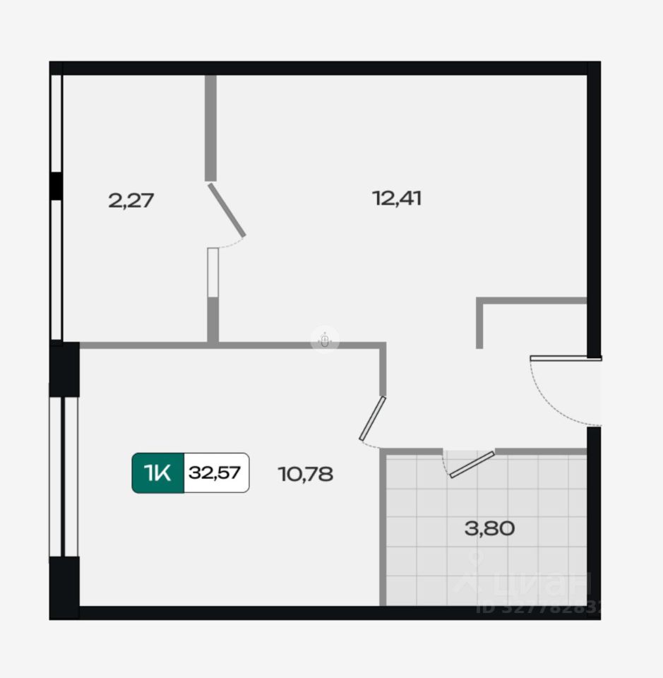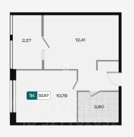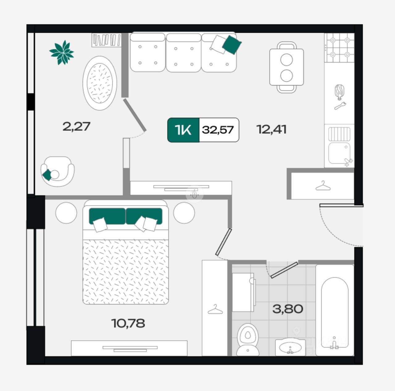 общая площадь — 32,57 м²,
