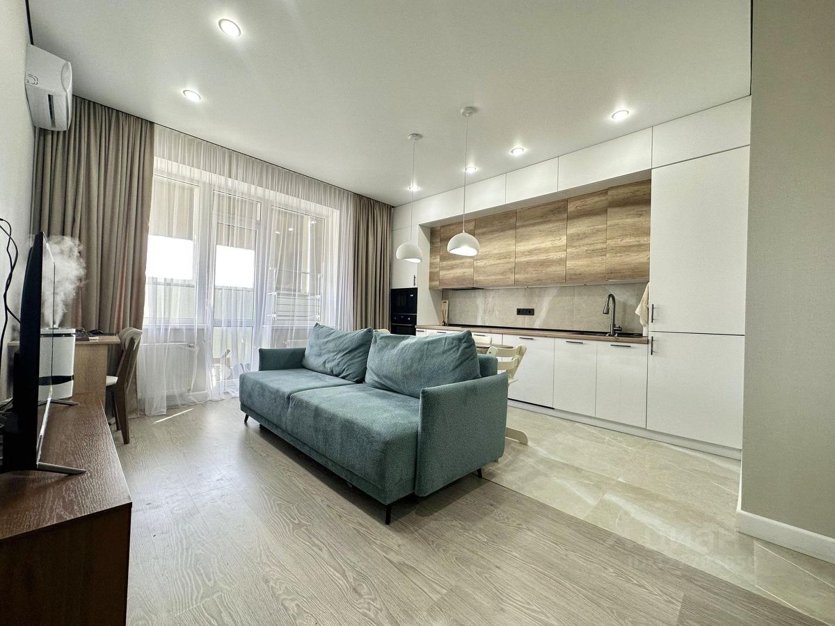 Квартира евро формата. Планировка удобная: просторная кухня-гостиная 19м2, две изолированные спальни (в одной из них своя гардеробная комната). С 22 этажа открывается отличный вид на город.