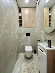 Два раздельных санузла отделаны керамогранитом, сделан тёплый пол.