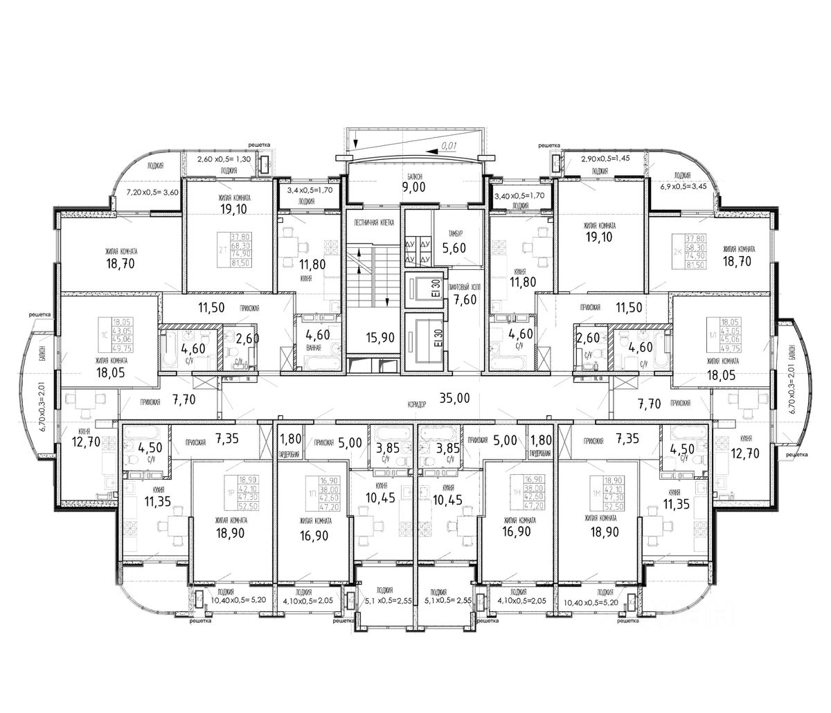 В проекте представлены квартиры с 1 и 2 комнатами. Помещения оснащены панорамными окнами, что обеспечивает высокую инсоляцию. Высота потолков варьируется от 3 до 3,3 м. Квартиры передаются без отделки, выполнена сухая стяжка пола, установлены входная дверь и трубка домофона. Реализована автоматическая подача показаний приборов учета.