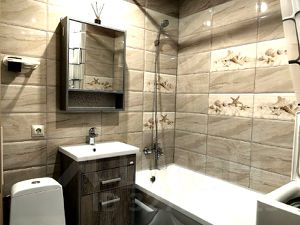 Санузел: плитка, сантехника в рабочем состоянии.