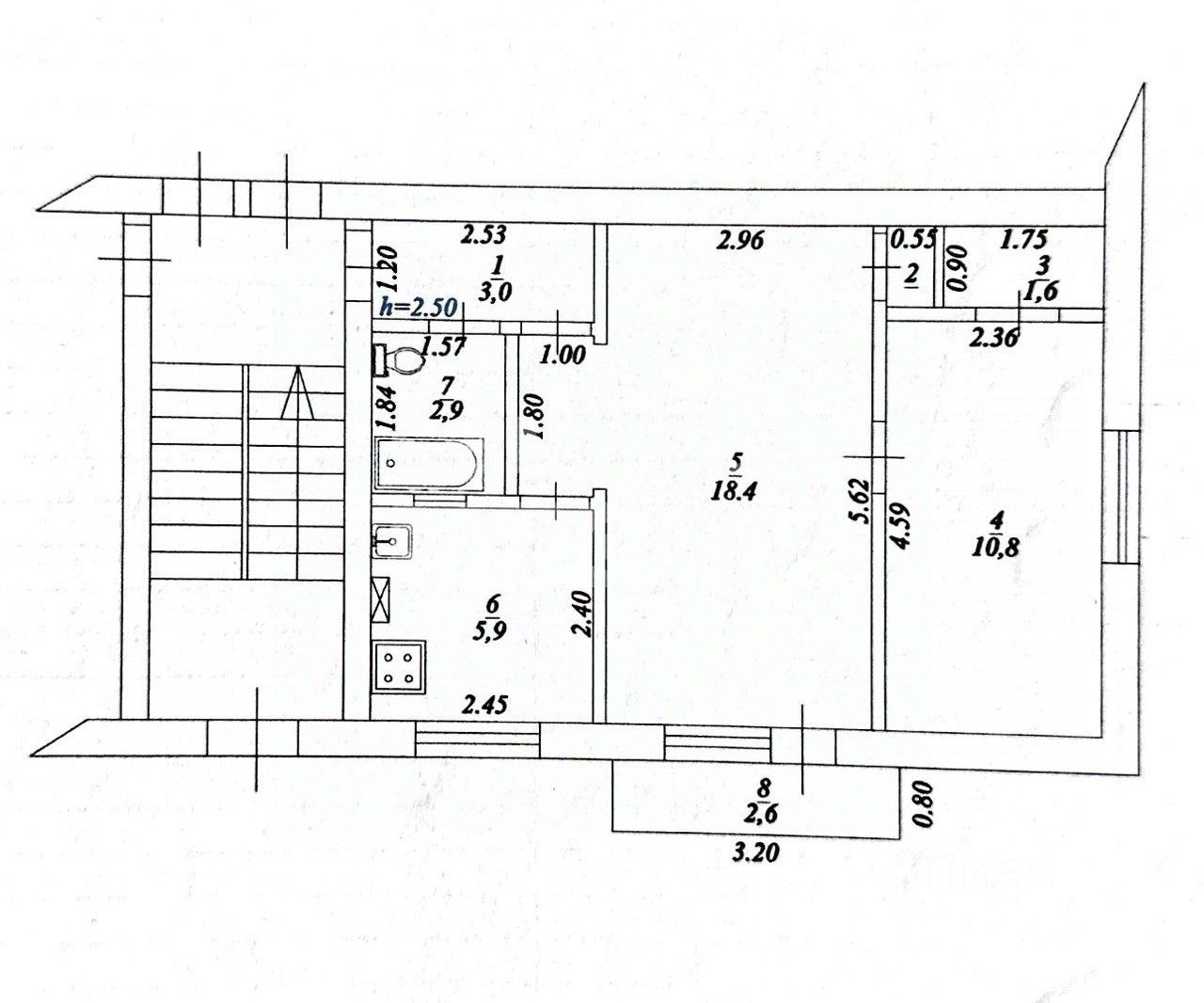 -комнаты смежно-раздельные, 18.4 м².,11.8м².,
