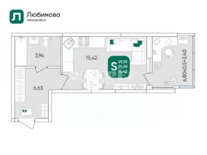 15,4 м²