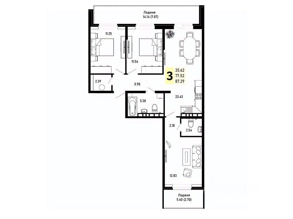Общая площадь87,29 м²