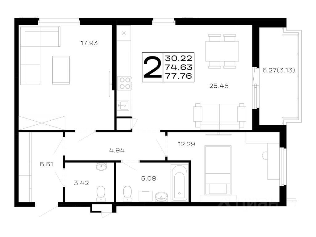 Общая площадь77,76 м²
