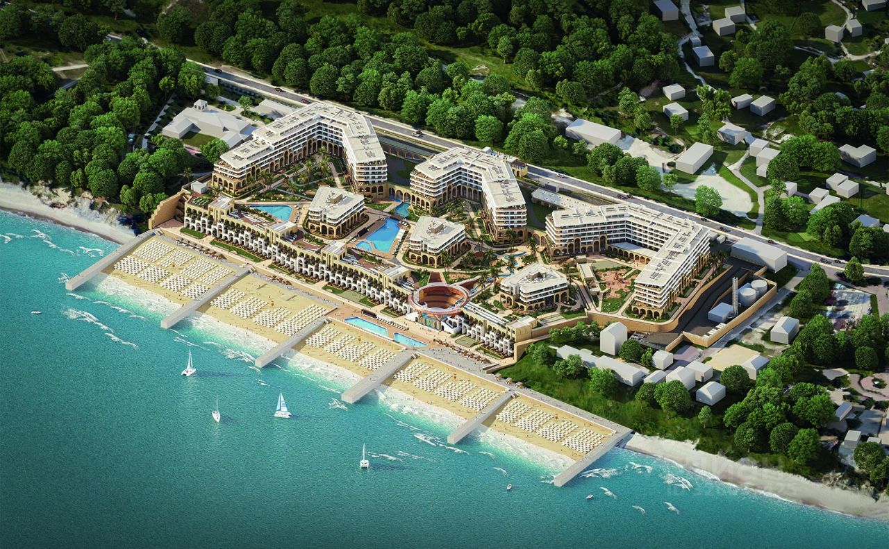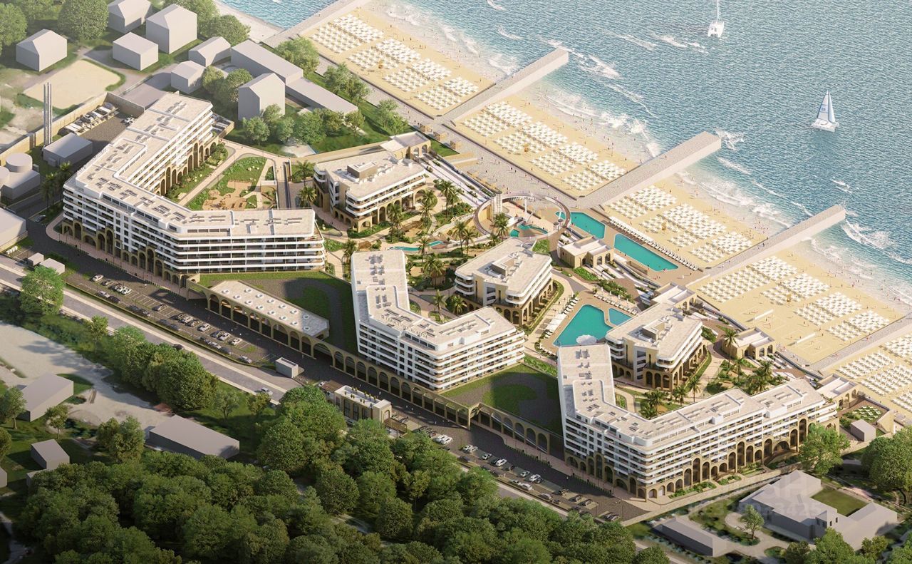 Гранд-отель премиального уровня. Здание построено по монолитной технологии с облицовкой кирпичом и отвечает международным стандартам проектирования гостиниц высокого класса. Архитектура и планировочные решения комплекса создают атмосферу уюта и комфорта как для отдыха, так и для длительного проживания. В отеле установлены пассажирские и грузовые лифты. В составе комплекса представлены апартаменты различных форматов: студии, квартиры с 1 и 2 спальнями. Высота потолков составляет 2,9 м. Все помещения идут с дизайнерской отделкой, мягкой мебелью и бытовой техникой. Интерьеры выполнены с использованием качественных отделочных материалов: виниловой плитки, керамики, обоев и панелей в спокойных тонах. Установлены панорамные окна, из которых открываются живописные виды на море или горы. В проекте создана комплексная инфраструктура для курортного отдыха. В распоряжении гостей — крытые и открытые бассейны, спа-комплекс с несколькими типами саун, фитнес и велнес-центры. Оборудованы VR-комнаты, кинотеатр и детская комната. Амфитеатр на 700 мест с парящим мостом и водопадом является центром культурных мероприятий. Для владельцев автомобилей предусмотрены подземный и наземный охраняемый паркинг. На территории также располагается деловой центр, рестораны и собственный благоустроенный пляж площадью около 30 000 кв. м. Отель расположен на побережье Черного моря в селе Агой, в 15 минутах транспортом от центра Туапсе. До пляжа и моря можно добраться пешком за 510 минут. В пределах 1015 минут транспортом доступны живописные природные локации — смотровые площадки, лесопарк Кадош, горные массивы и скальные образования. Ближайшая остановка общественного транспорта Аэропорт находится в 10 минутах пешком.