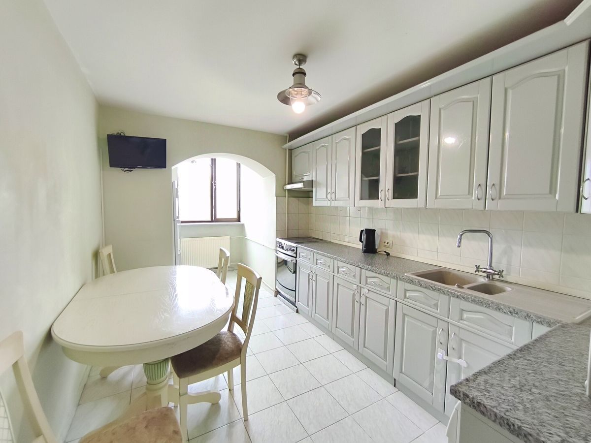 В квартире просторная гостиная - 26 м2 и по меркам домов 90-х годов постройки комфортная по размерам кухня - 14 квадратов с установленным кухонным гарнитуром!