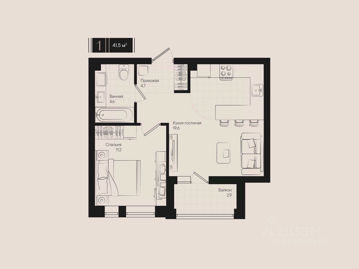 Общая площадь41,5 м²