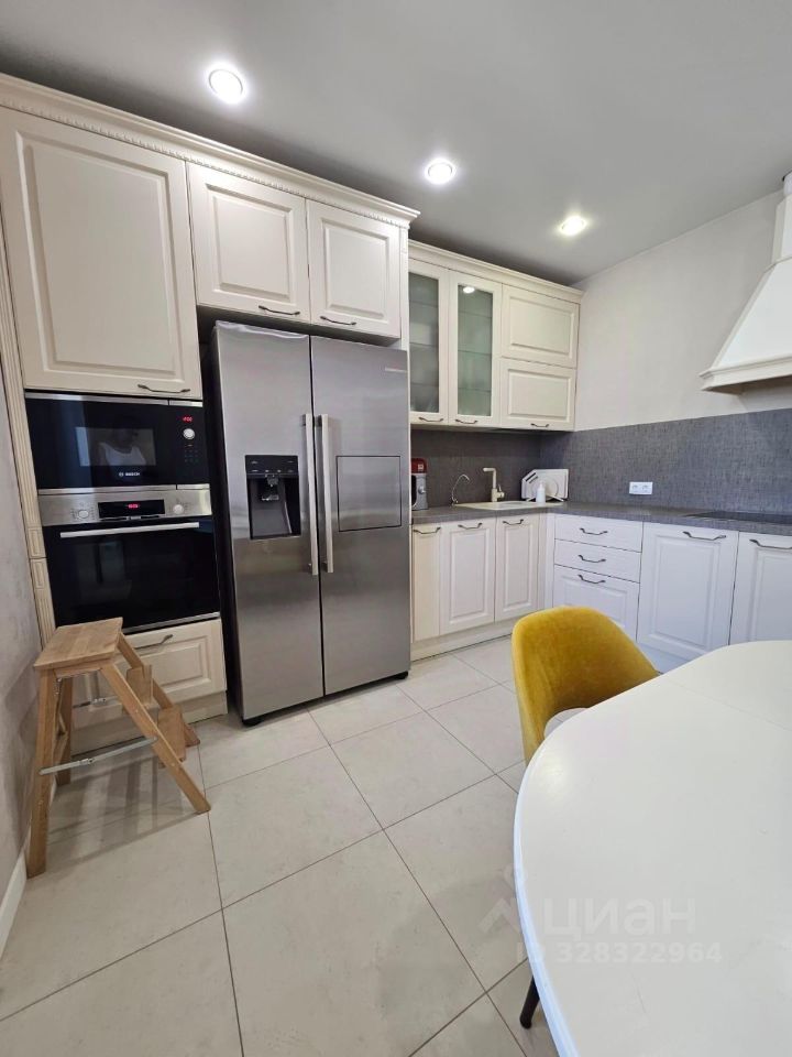 Кухонный гарнитур Мария, вся бытовая техника Bosch (варочная панель, духовой шкаф, встроенная микроволновая печь, холодильник side-by-side с лёдогенератором, стиральная машина), вытяжка в стиле кухонного гарнитура с деревянной отделкой. В кухне установлена система очистки воды. В спальне установлены встроенный зеркальный шкаф и туалетный столик Мария.