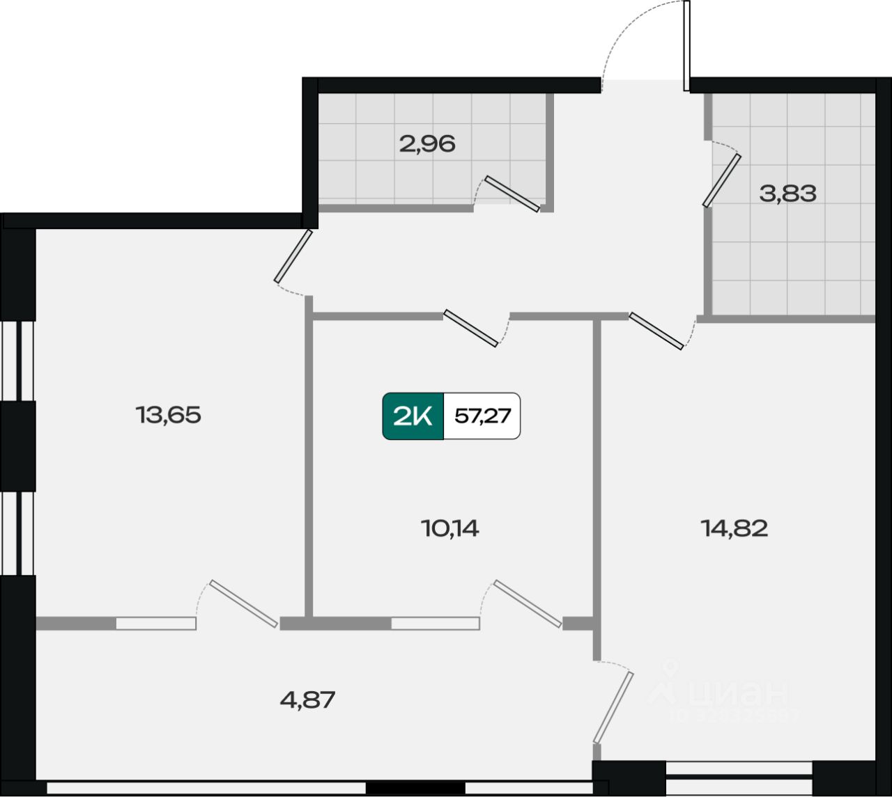Общая площадь57,27 м²