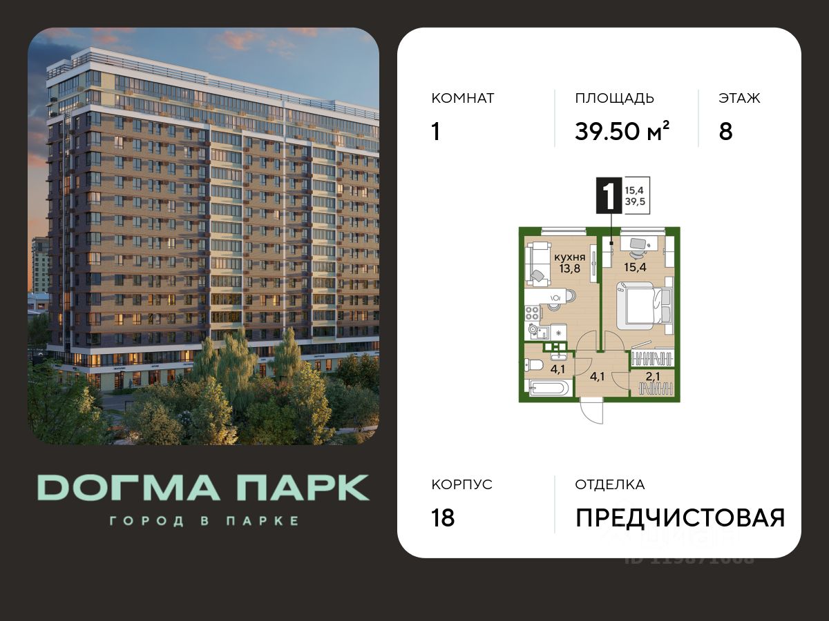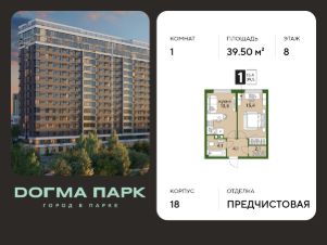 В продаже 1-комнатная квартира от застройщика! Мкр. "ДОГМА ПАРК" г. Краснодар, Литер 35 Срок сдачи: 2 кв. 2027, общей площадью 39.50 кв.м., на 8 этаже.