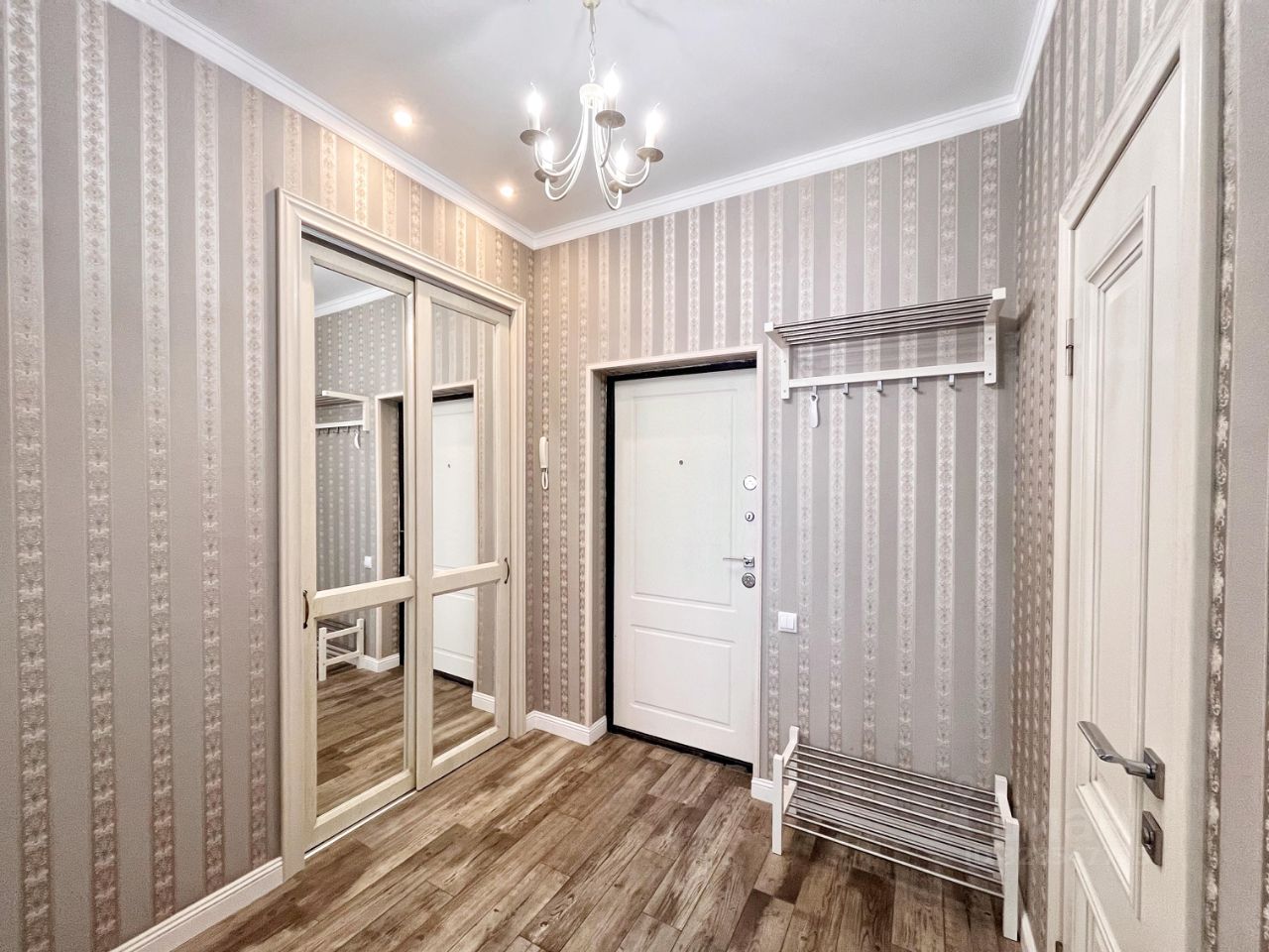 Продается уютная однокомнатная квартира в современном монолитно-кирпичном доме, построенном в 2017 году. Общая площадь квартиры составляет 48 кв. м, а просторная кухня — 15 кв. м. Расположена на 9 этаже из 11, что гарантирует отличный вид из окон, выходящих на улицу. Высота потолков 2.8 метра создает ощущение простора и света.