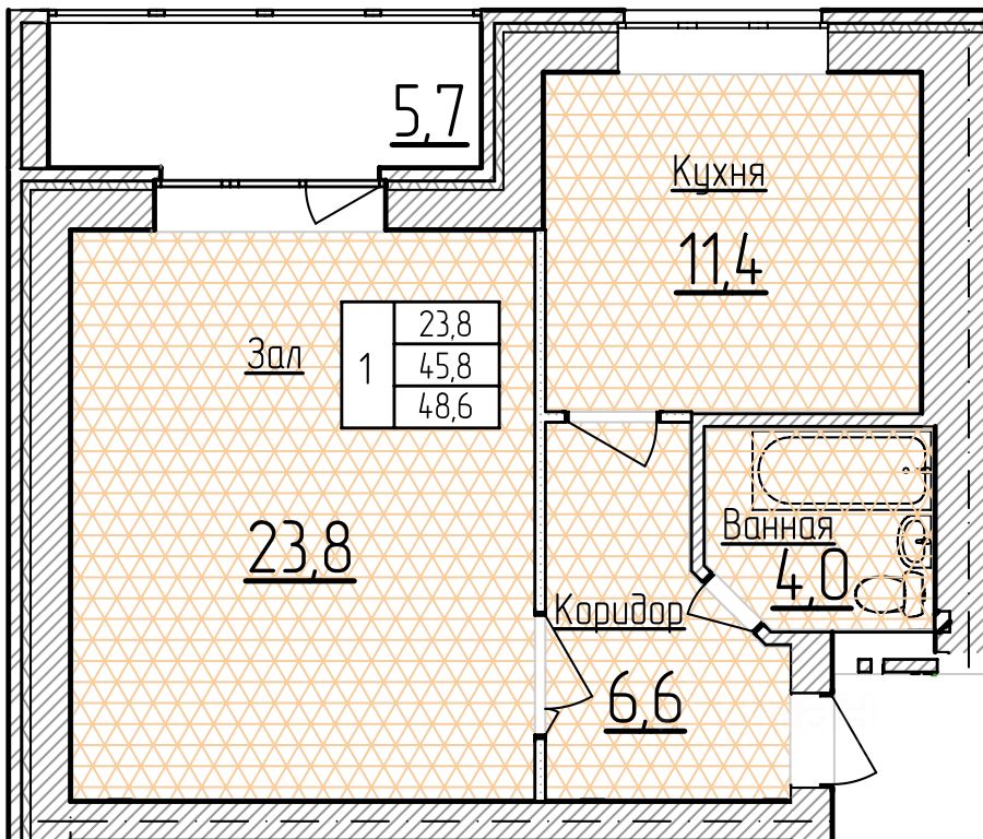 Общая площадь48,6 м²