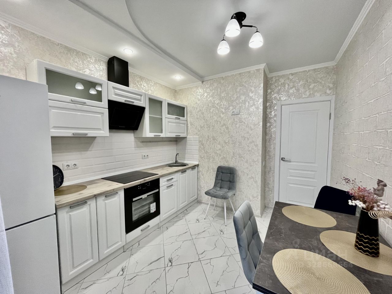 Общая площадь квартиры — 34 кв. м, включая просторную кухню площадью 9 кв. м и жилую площадь 18 кв. м. Квартира расположена на 14 этаже 19-этажного кирпичного дома, построенного в 2021 году. Высота потолков составляет 2.7 метра, что создает ощущение простора и комфорта.