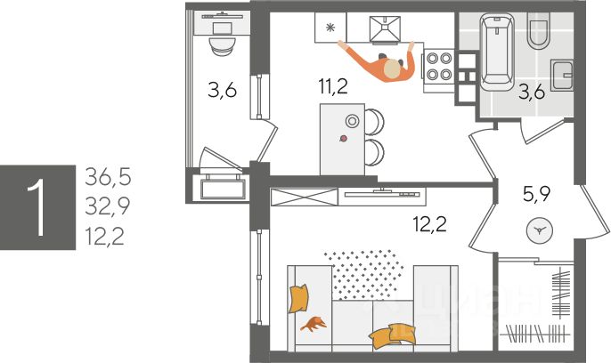 В продаже 1-к квартира от застройщика! ЖК "Рекорд" 2 очередь, г. Краснодар, Литер 5. Срок сдачи: 2 кв. 2026, общей площадью 36.5 кв.м., на 10 этаже.