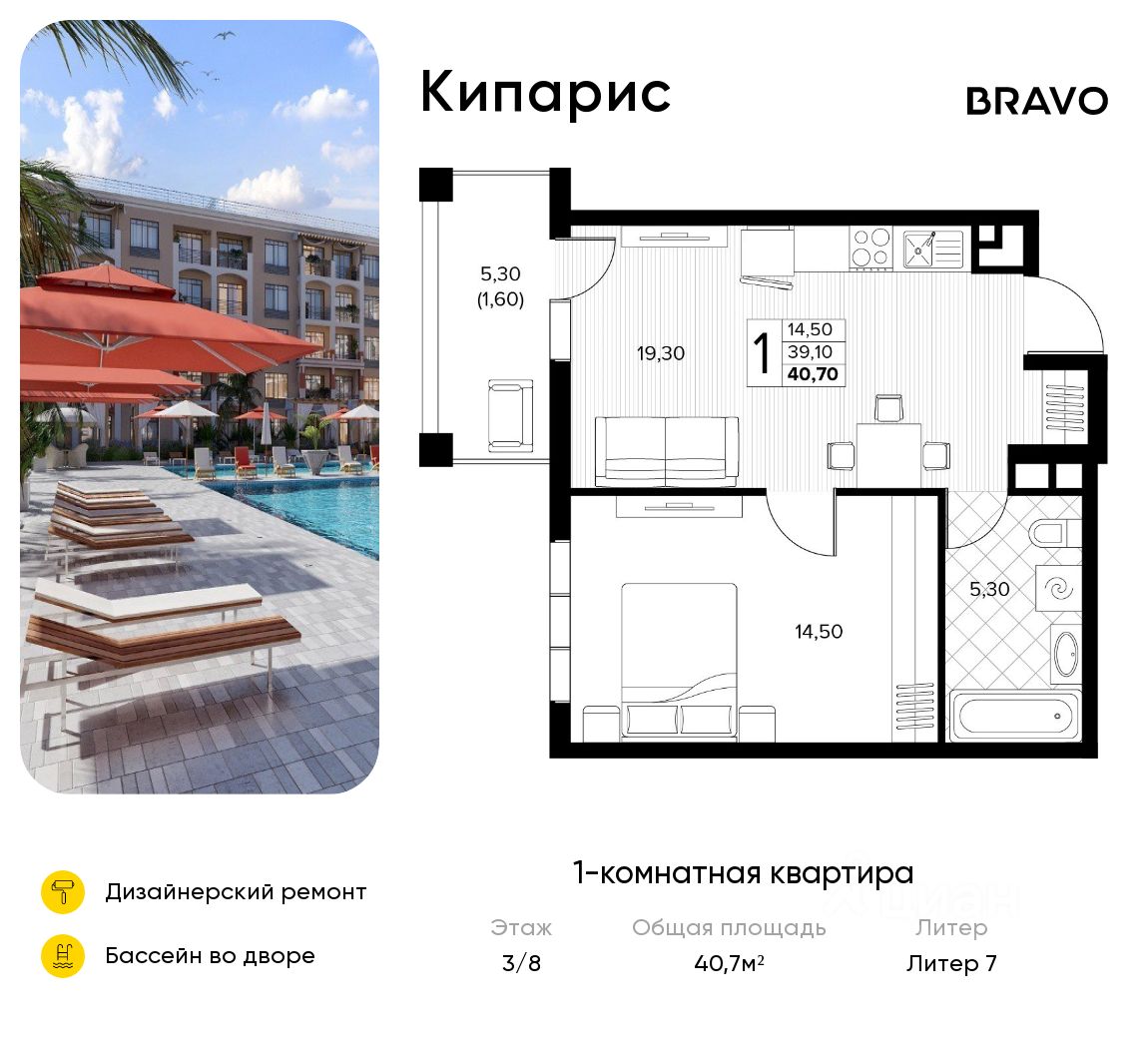 Продаётся 1-комн. квартира от застройщика c отделкой в ЖК "Кипарис" на 3 этаже. Общая площадь:40.7 кв.м., площадь просторной кухни-столовой:19.3. B квартире один балкон. Высота потолков 2.81 м.