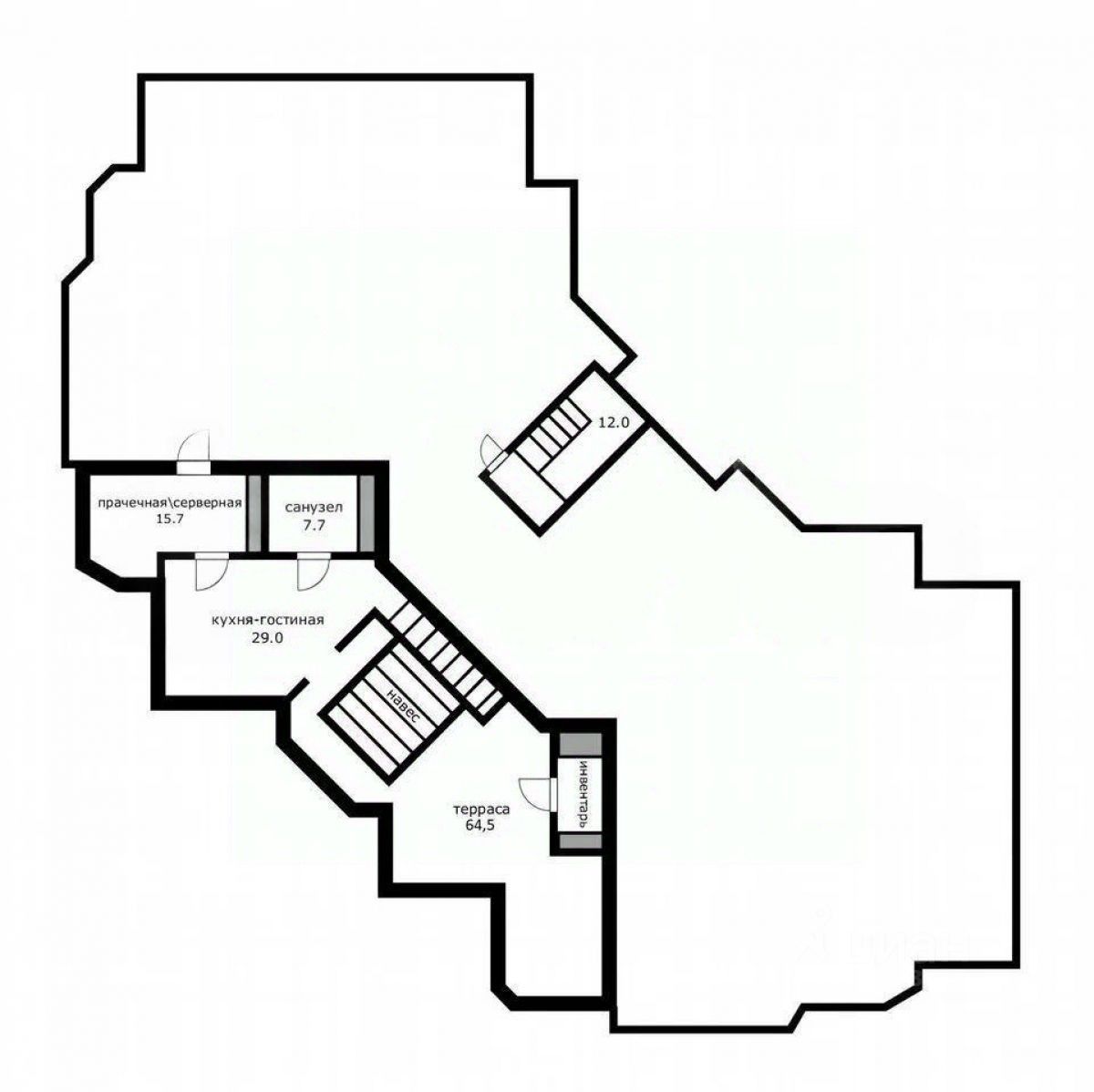 просторная терраса с оборудованным кинотеатром — идеальное пространство для отдыха и развлечений на свежем воздухе.