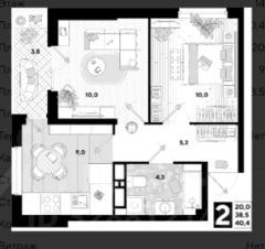 Общая площадь 41м2: 38,6м2 по выписке + 3.8м2 балкон.