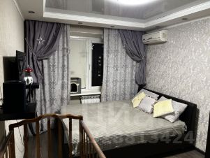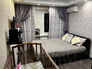 полностью обустроенная гостинная и спальная со встроенными шкафами и мягкой мебелью.