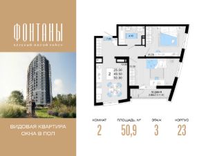 Общая площадь50,9 м²