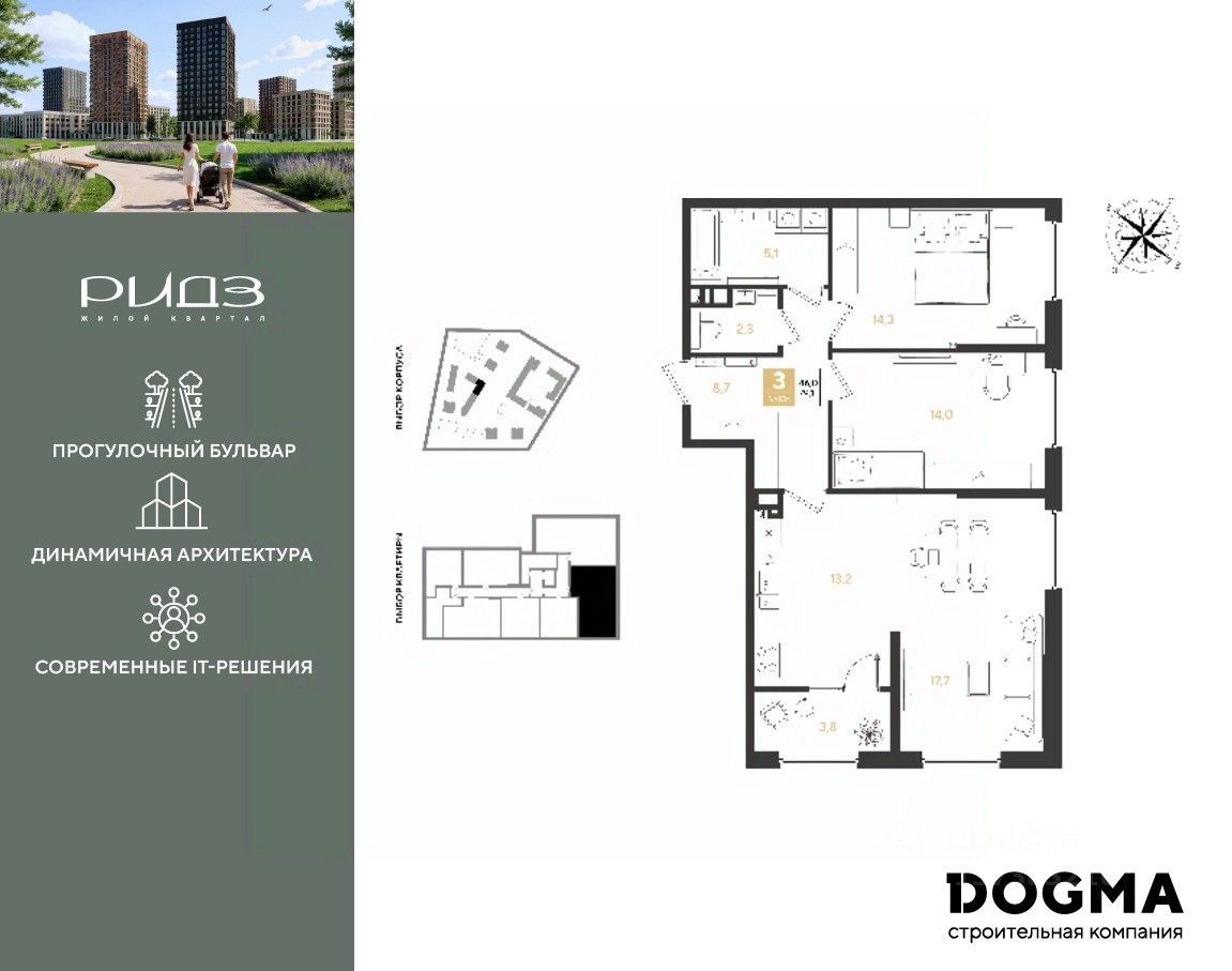 В продаже 3-к квартира от застройщика! ЖК "РИДЗ" г. Краснодар, Литер 14.