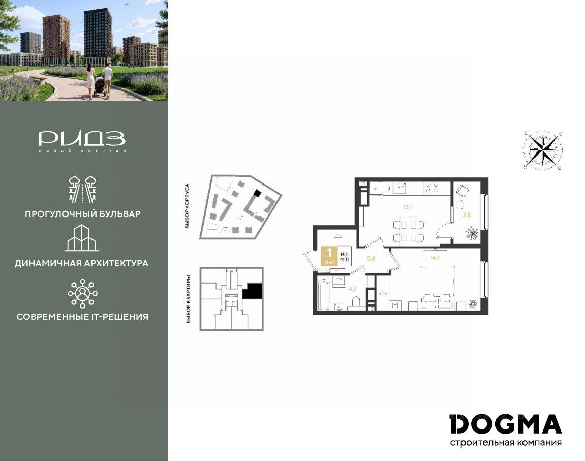 Срок сдачи: 3 кв. 2028, общей площадью 41 кв.м., на 9 этаже.