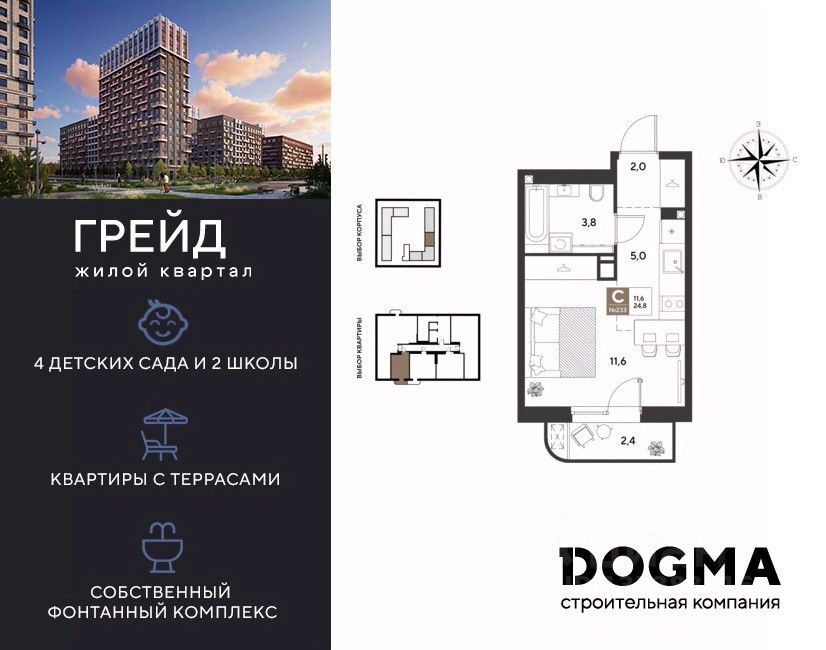 В продаже квартира-студия от застройщика! ЖК GRADE г. Краснодар, Литер 13