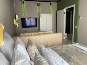 В квартире сделан стильный дизайнерский ремонт , совмещенный санузел. Квартира полностью укомплектована мебелью и техникой ! Все остается !