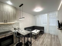 Квартира выполнена в современном стиле с качественным евродизайном: практичная планировка, продуманная организация пространства, достаточное естественное и искусственное освещение, удобное расположение розеток и выключателей.