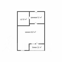 Санузел совмещенный 3,8 м2 . Прихожая 3,3 м2. Сама жилая площадь квартиры -16,9 м2.