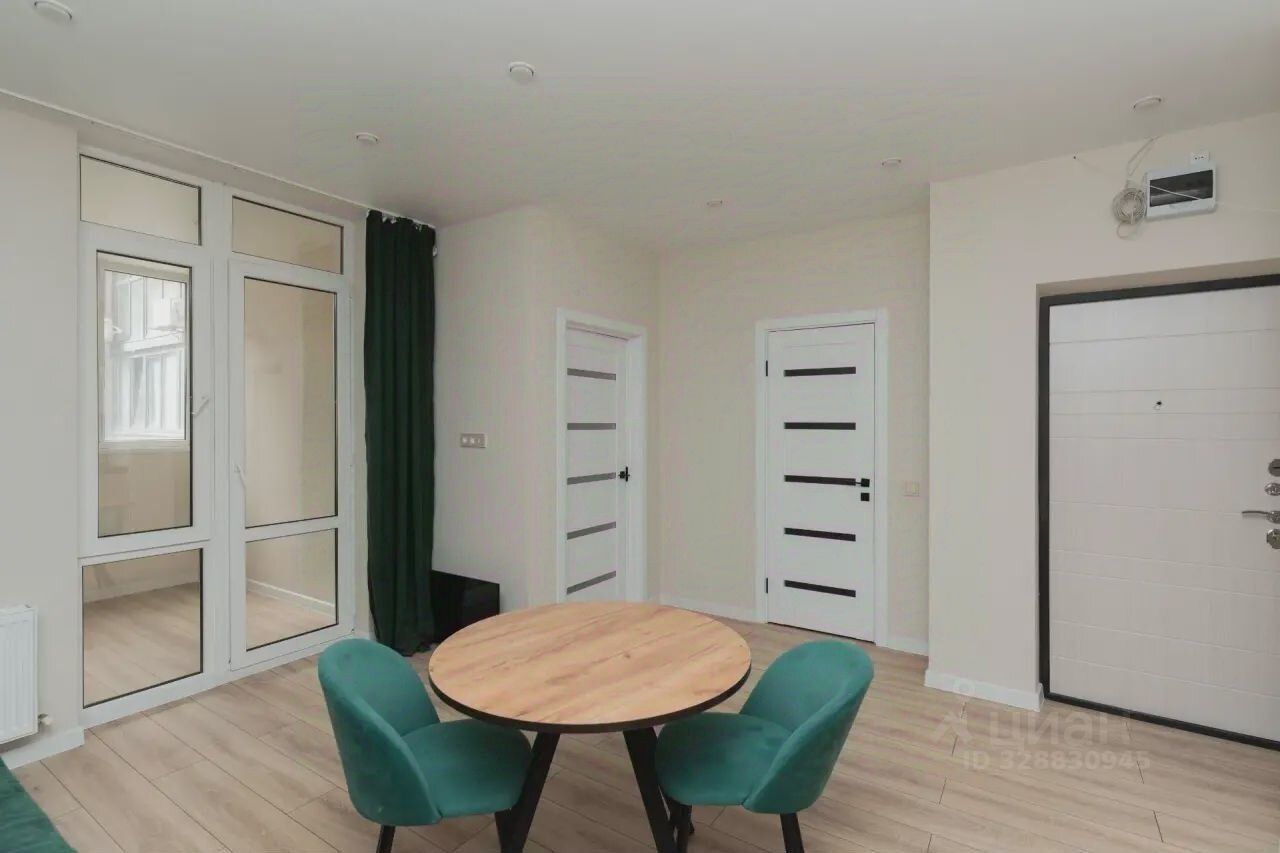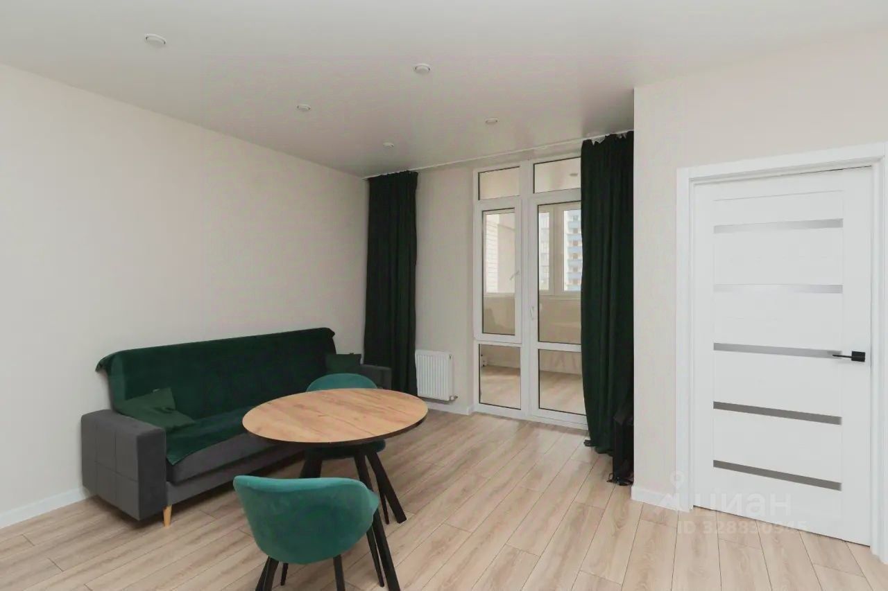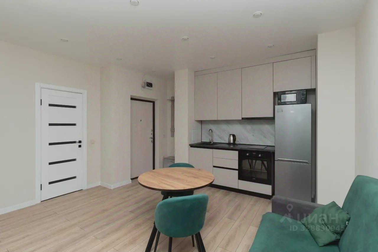В куxнe-гocтиной удoбнo раcплaниpована зoна отдыха и обеденная зона. Установлен кухонный гарнитур с кухонной техникой, мягкая мебель.